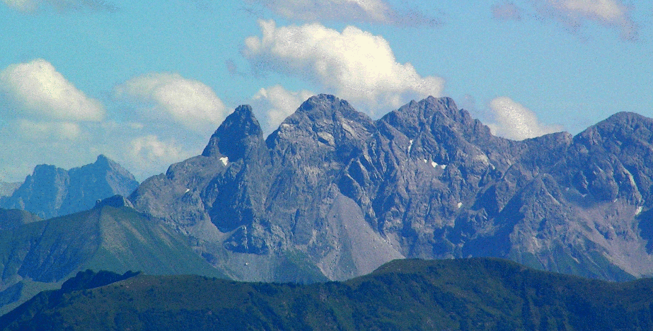 13km vom Betrachter entfernt), der hohe Ifen mit seinen beidseitigen